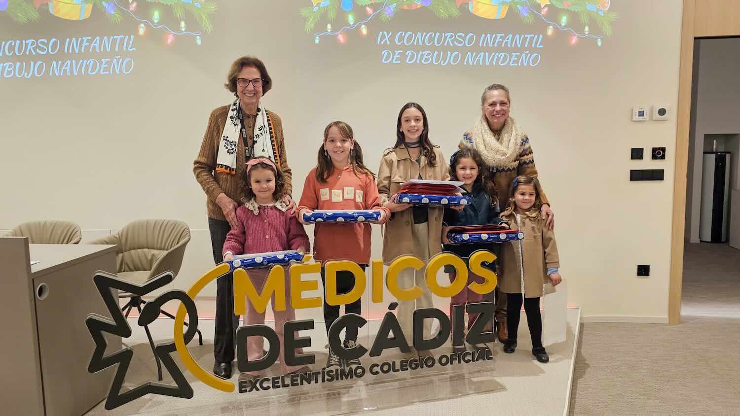 La sede provincial del Colegio de Médicos recibió a las ganadoras de la novena edición del Concurso de Dibujo Navideño, a las que se hizo entrega de los premios a las obras más destacadas presentadas a concurso en esta edición. Los dos primeros premios han recaído en Carmen Segado, en la categoría de 4 a 7 años, por la creación de título ‘Elficidades’, y Julia Quevedo, en la categoría de 8 a 12 años, autora del dibujo original titulado ‘En esta Navidad especial, gracias médicos por cuidarme tan genial’. Ambas obras han protagonizado el diseño de la felicitación navideña del COMCADIZ a los colegiados.