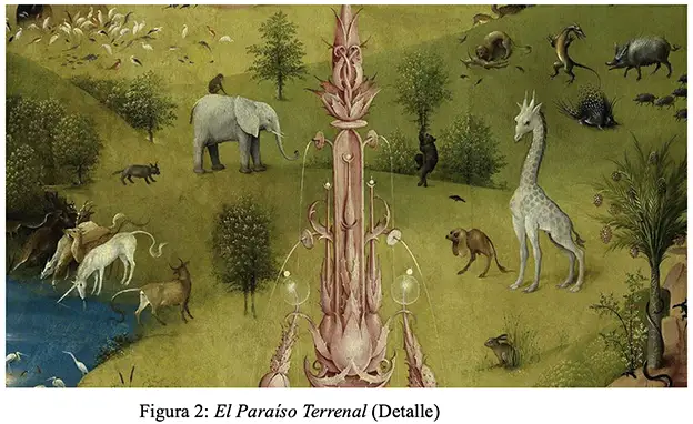 En la tabla de la izquierda podemos observar el Paraíso Terrenal, donde plantas, aves y animales lo pueblan todo (figura 2).